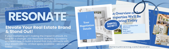 If you've been feeling that your real estate marketing lacks the impact you know it should have, now is the time for change. Join our Resonate Marketing Academy today and discover how to create a brand that truly resonates with your dream clients. Limited spots are available for our next cohort of forward-thinking real estate professionals. Secure your spot now by clicking here or visiting www.amandafarnumtraining.com/resonate.